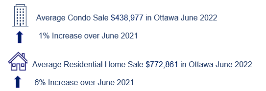 Manotick Mahogany – The average house price was $819,900 in June 2020, $1,211,500 is the new average price for June 2022 – 47% higher!